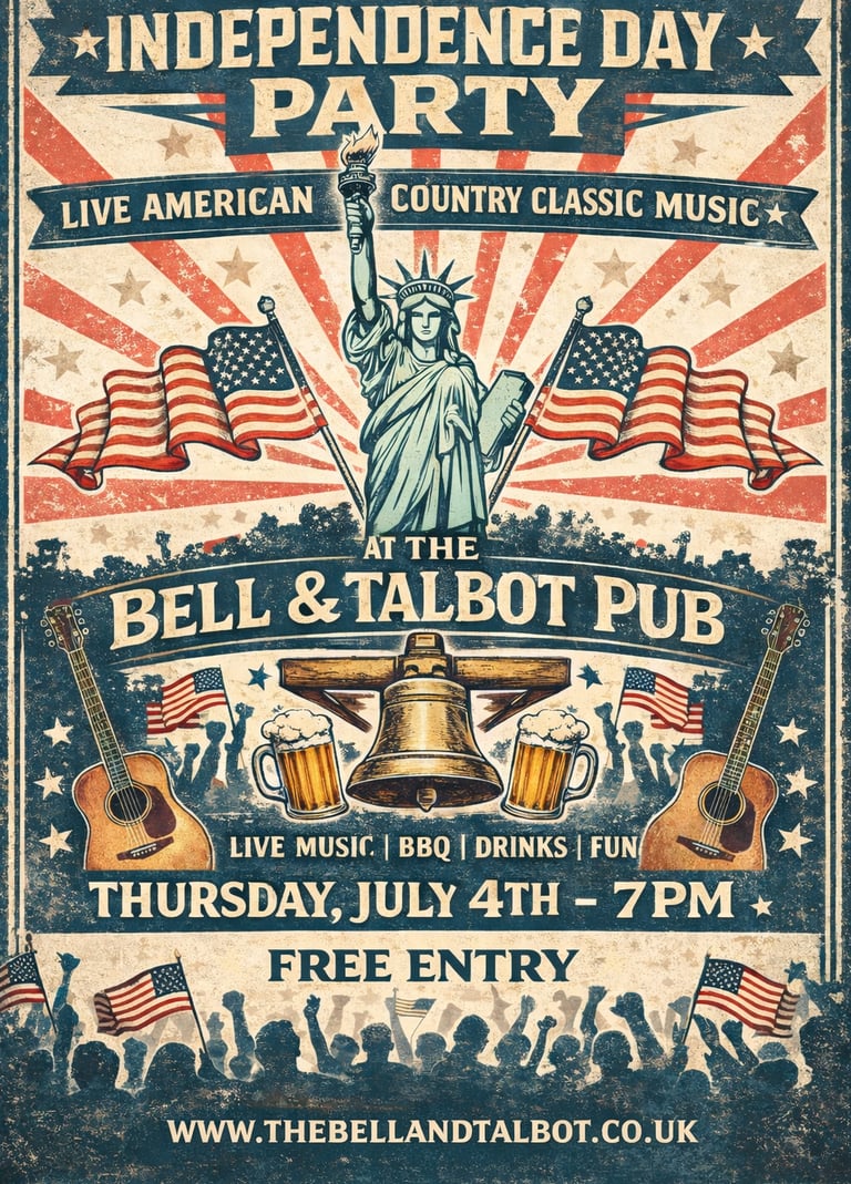 Enjoy live music throughout the evening alongside a classic BBQ, bringing great tunes, great food, and a fantastic atmosphere to our Independence Day celebration.